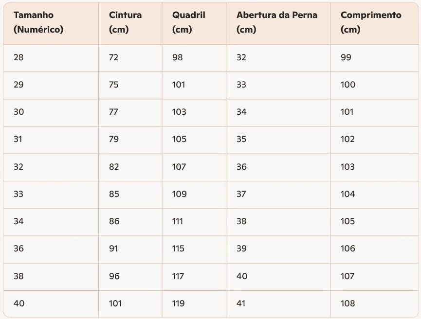 1- numeração em padrão internacional. Verificar as medidas da tabela e quando em dúvida optar por peças acima da sua numeração. Acesse a página Guia de Medidas e nosso blog para saber mais detalhes.