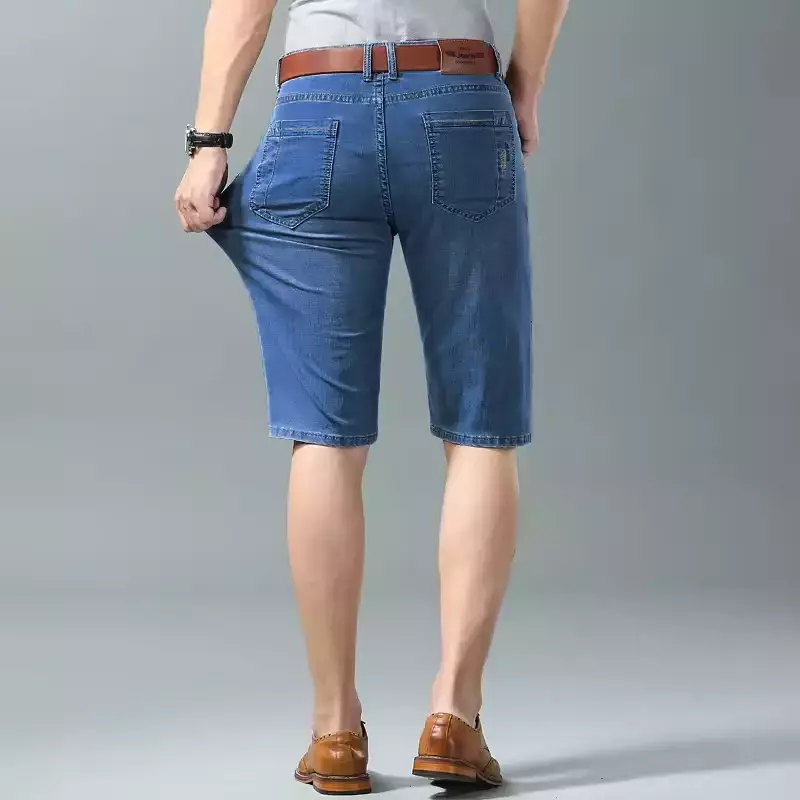 A bermuda jeans clássica é aquele item indispensável no guarda-roupa masculino. Com corte tradicional e acabamento refinado, ela combina com tudo — do look casual ao visual mais alinhado — sem perder a elegância.